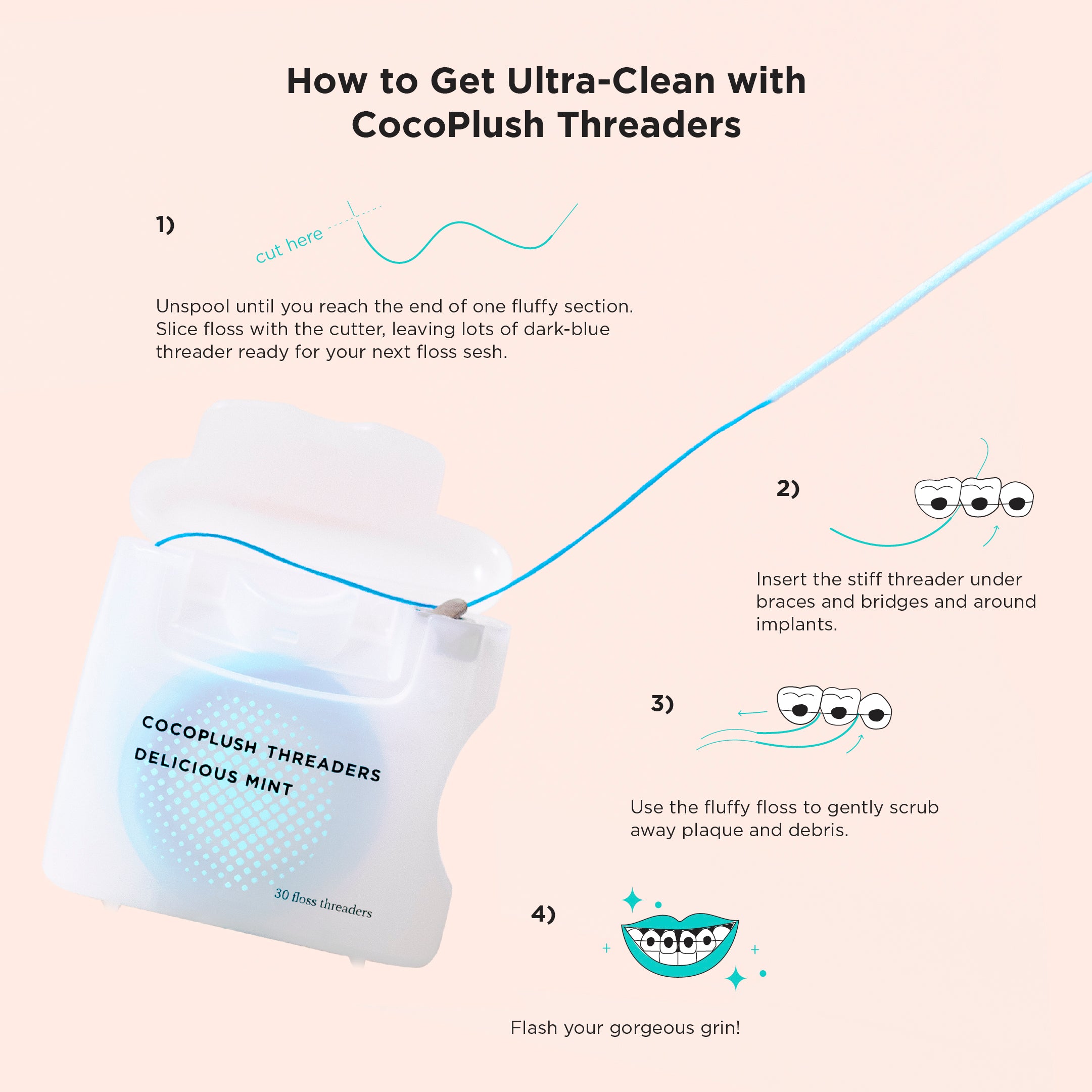 - What it is: Extra-plush Cocofloss — our soft textured dental floss in a threader style to brighten patient smiles.